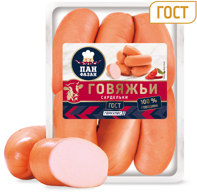 Сардельки "Говяжьи" Сардельки "Говяжьи" изготавливаются по ГОСТу из говядины первого сорта с добавлением сухого молока, черного перца и чеснока. Выпускаются в натуральной оболочке – говяжьих черевах. Продукт особенно оценят гурманы, предпочитающие натуральную говядину! А, ГОСТ гов. черева газ. среда 25 суток 0..+6 ≈ 0,5 кг 880 кДж (210 ккал) 17 г 15 г 0 г говядина, жир-сырец говяжий, нитритно-посолочная смесь, комплексная пищевая добавка, экстракты пряностей: черного, красного перцев, чеснока, перец черный молотый.